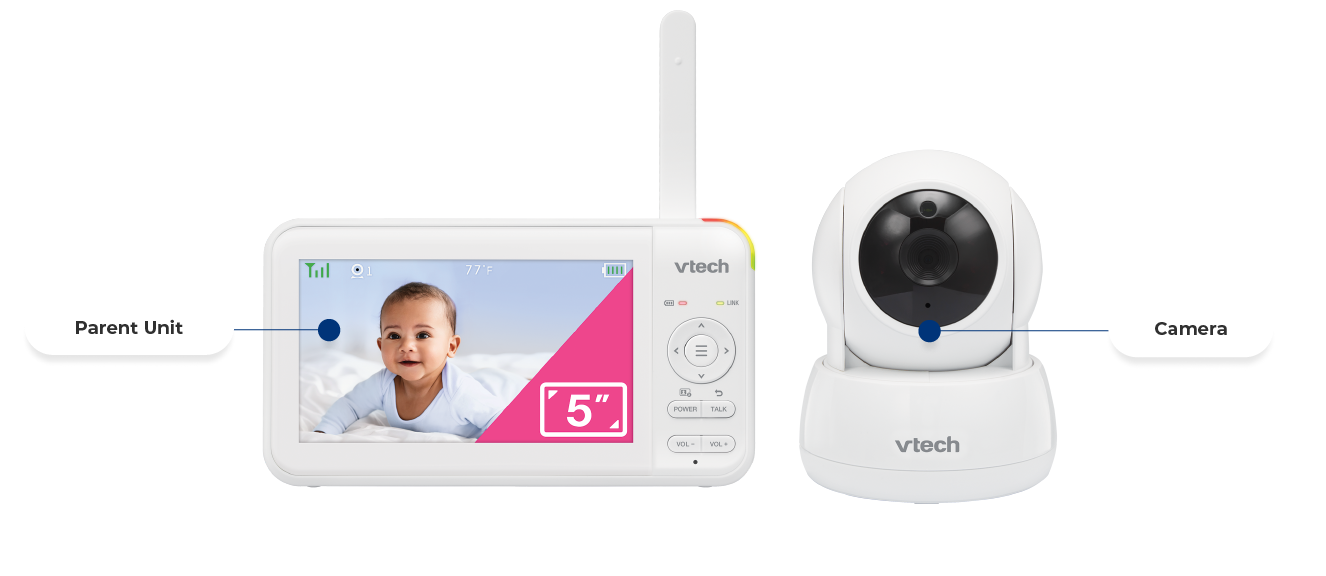Clearly see every little movement on the 5" parent unit and feel like you're right there. With a 3-level sound indicator and accessible from any room in your home, you’ll never miss a moment - even when you’re on the move