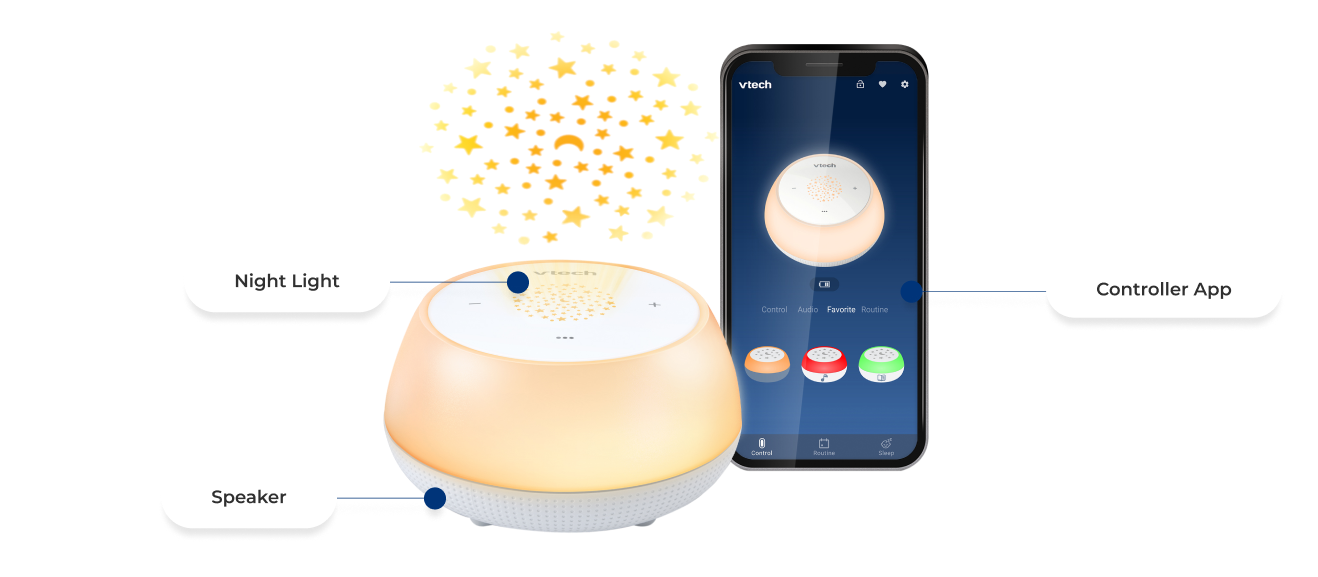 Fill the nursery with soothing sounds, music, or stories preset in the free smartphone app or stream music from your favorite music app directly through the speaker.